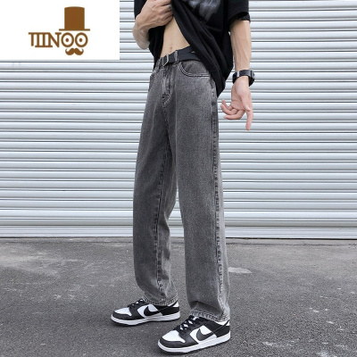 YANXU复古烟灰色牛仔裤男款夏季薄款宽松直筒裤子美式高街潮牌休闲长裤