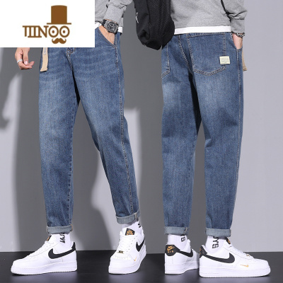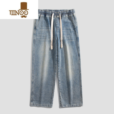 YANXU牛仔裤男士宽松直筒潮牌休闲2023夏季新款长裤子男装薄款九分
