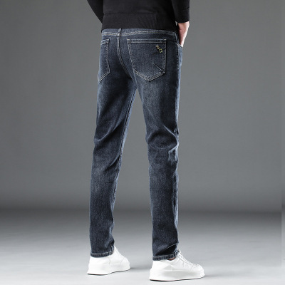 特色水洗牛仔裤男 深色秋冬款百搭显瘦 修身弹力小直筒时尚休闲裤