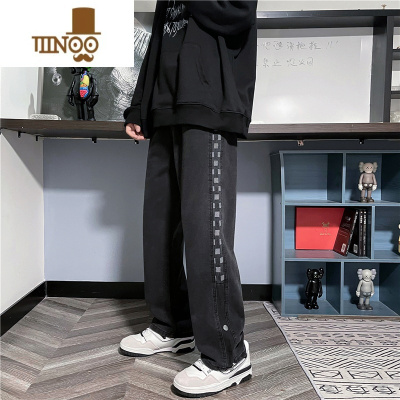 YANXU欧美vibe裤子男秋季新款潮痞帅炸街牛仔裤设计感小众宽松直筒长裤