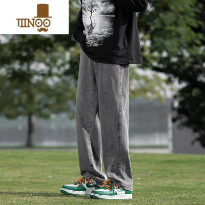 YANXU烟灰色牛仔裤男夏季薄款宽松阔腿裤子ins潮牌港风高街直筒长裤子