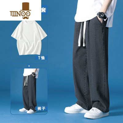YANXU牛仔裤男夏季薄款宽松直筒冰丝阔腿休闲长裤2023青少年高中生裤子