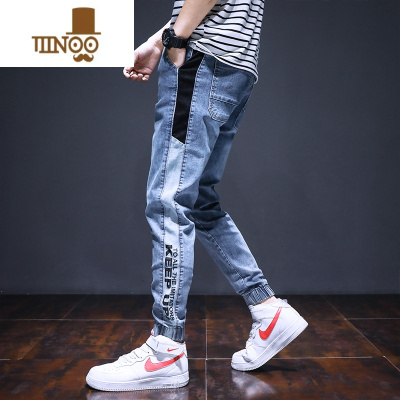 YANXU夏季薄款牛仔裤男士潮牌休闲束脚2023新款宽松工装九分裤子男