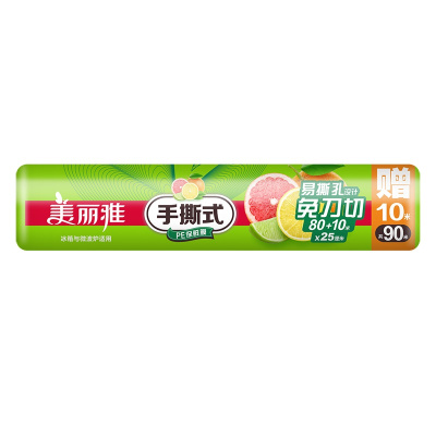 美丽雅 点断式经济装厨房冰箱冷热保鲜易撕PE保鲜膜25CM*80米加赠10米