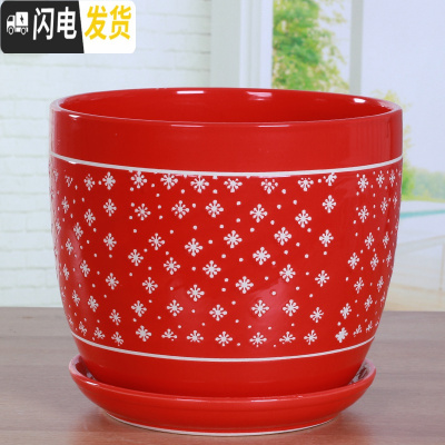 三维工匠中国风大红色陶瓷花盆批发有孔/喜庆花盆纯红个性创意花盆/免邮 红色//129 20-22cm花盆容器