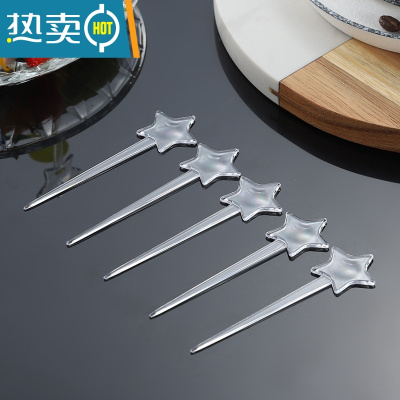 敬平彩色独立星星果针水果叉塑料签时尚创意钉子叉星型奶盖插棒 透明星星5000支牙签