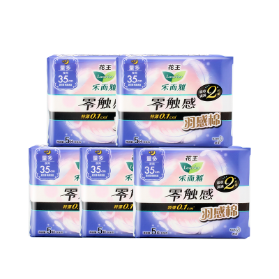 花王乐而雅夜用卫生巾350mm 5片零触感羽感棉量大日用超丝薄护翼型姨妈巾5包组合
