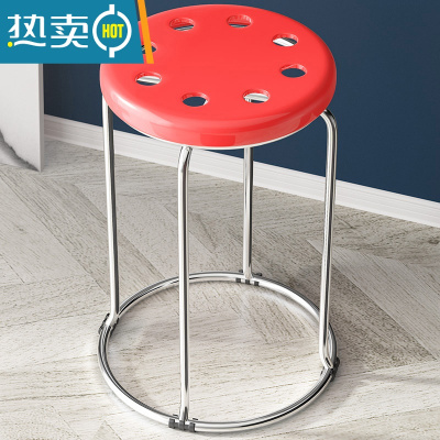 迅众 家用塑料凳子北欧风车圆凳加厚可叠放胶凳简约现代餐桌椅子高板凳