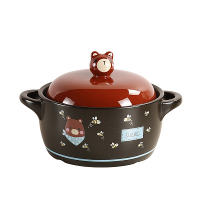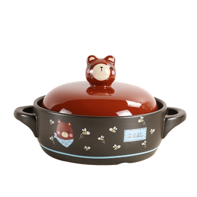 麦可可 砂锅炖锅陶瓷养生煲 家用可爱1L萌熊煲汤耐高温大中小号容量煲仔炖锅