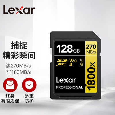 雷克沙 128GB专业版高速SD存储卡C10 U3 V60 4K高清流畅拍1800x