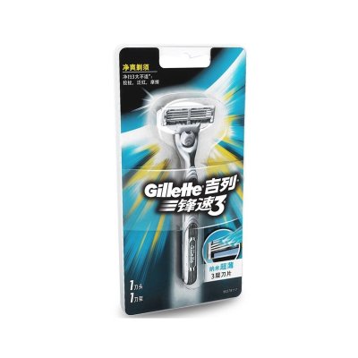 吉列锋速3刀片剃须刀手动刀头非吉利风速5男三层刮胡刀 1刀架4刀头+剃须膏