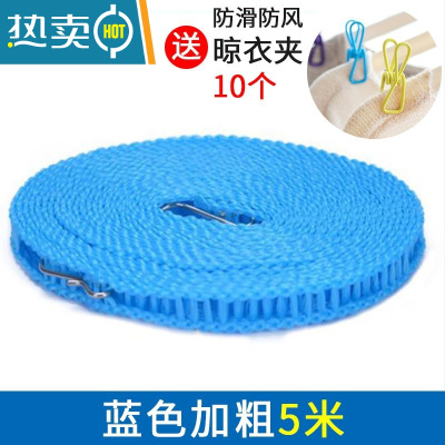 敬平晒被子顶楼晾衣绳厕所绳子加粗户外凉衣绳室内晾衣架吊绳阳台 蓝色加粗5米+10个晾衣夹