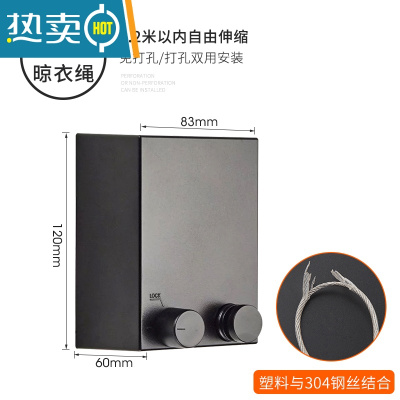 敬平阳台伸缩晾衣绳晒被子挂衣服器钢丝绳子室内凉衣架拉衣线免打孔 黑色4.2米-升级款