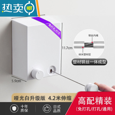 敬平伸缩免打孔隐形晾衣绳室内晾衣服器阳台不锈钢晾衣架钢丝绳 哑光白升级版4.2米_免打孔/打孔/ 通用绳子