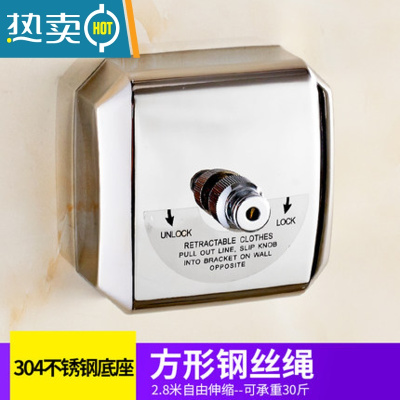 敬平不锈钢酒店宾馆阳台晾衣服绳子晒被子器挂窗帘浴帘钢丝绳免打孔 2.8米方形钢丝绳[打孔款] 配螺丝钉