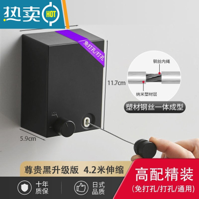 敬平伸缩免打孔隐形晾衣绳室内晾衣服器阳台不锈钢晾衣架钢丝绳 尊贵黑升级版4.2米免打孔/打孔/ 通用绳子
