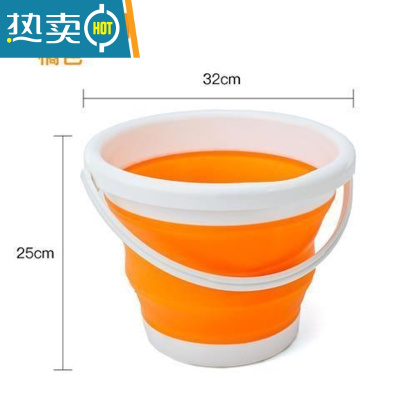 敬平折叠桶打水桶塑料家用洗车便携式小洗澡美术储水旅行车用钓鱼户外 橘红色大号10L(送6米绳子) 送完为止