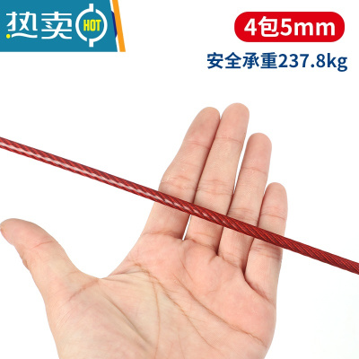敬平304不锈钢钢丝绳 葡萄架大棚 晾衣绳牵引彩色包胶涂塑细软起重绳 红色包塑5毫米10米 送2个卡头绳子