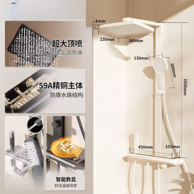 惠达(HUIDA) - TF366 花洒套装家用卫浴淋浴花洒白色置物平台增压沐浴花洒奶白奶油风