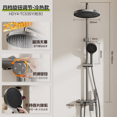 惠达(HUIDA) - TF290 无顶喷花洒奶油风淋浴花洒套装家用简易浴室精铜沐浴器枪灰色