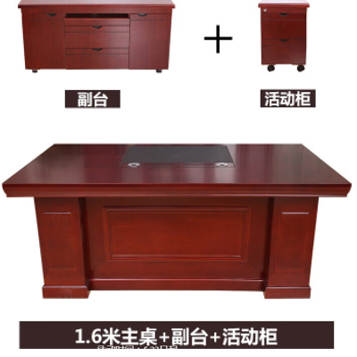 金扎特大班台办公桌总裁桌组合简约现代老板桌椅 红胡桃色 1.6*0.8米班台(含副柜、小柜)