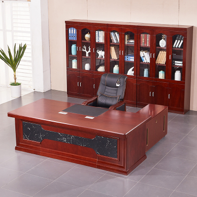 金扎特大班台办公桌总裁桌组合简约现代老板桌椅 红胡桃色 2.4*1.2米班台(含副柜、小柜)