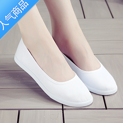 SUNTEK牌护士鞋女白色平底软底美容鞋坡跟夏季透气舒适小白鞋