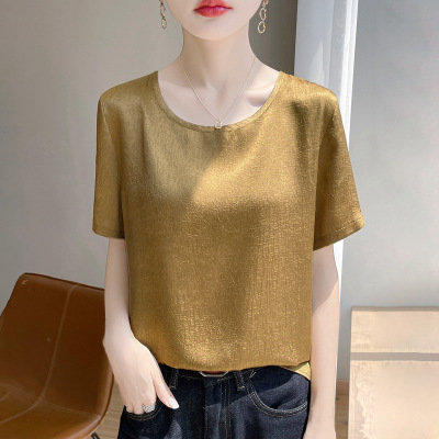 丝滑缎面圆领短袖女春夏新款宽松百搭轻薄T恤上衣轻薄透气半袖潮