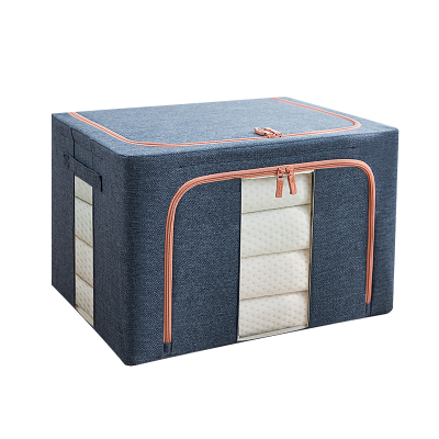 壹志66L棉麻收纳箱 双面可视收纳盒储物整理箱 加厚衣服被子整理箱带钢架双拉链搬家用箱子