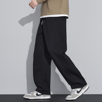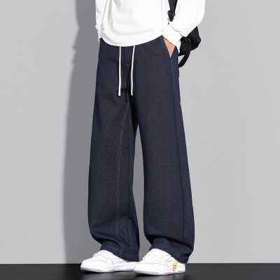 |秋季新款日系复古针织卫裤宽松小弯刀男士阔腿裤休闲版型