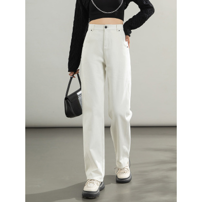白色牛仔弯刀裤女韩版高腰宽松年春季创意新款水洗镰刀裤