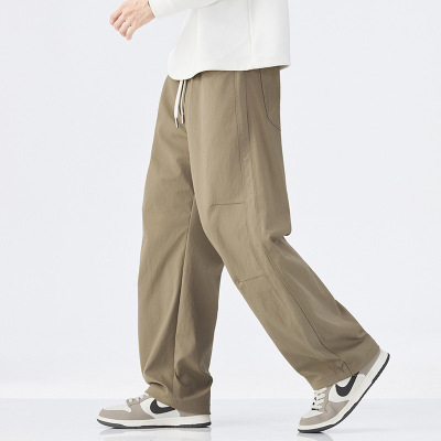 |港风早秋季新款复古弯刀裤男士宽松直筒阔腿裤美式休闲款