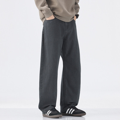 美式复古牛仔裤男士秋季新款春秋款宽松直筒弯刀阔腿裤子男式