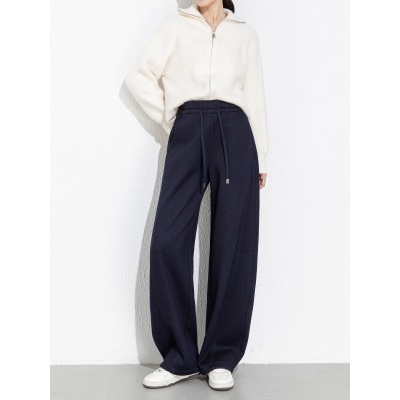 年冬季新款高腰羊毛复合弯刀裤女抽绳松紧腰休闲长裤
