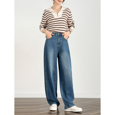 不易色宽松弯刀裤牛仔裤女秋季高腰通勤九分镰刀裤