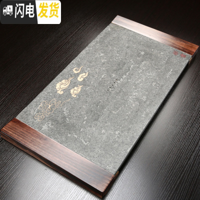 三维工匠乌金石茶盘整块石头茶台 家用茶具实木框托盘石材功夫茶海简约 实木框乌金石祥云茶盘74x37