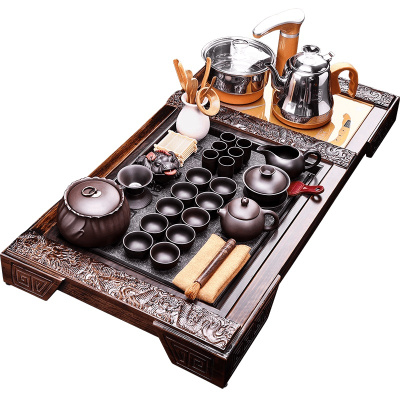 領藝 紫砂功夫茶具套装家用陶瓷泡茶器实木茶盘四合一 圣龙西施配三龙开泰全自动快速炉