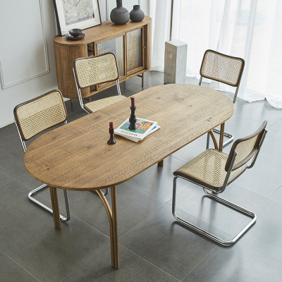汐岩中古北欧复古实木餐桌现代简约轻奢小户型椭圆桌子家用餐桌椅组合