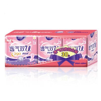 [苏宁超市]洁婷 透气双U日夜组合装(日用240mm*20片+夜用290mm*10片)30片 纤巧棉柔
