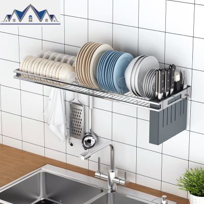壁挂式水晾碗碟沥水架放碗架免打孔厨房置物架碗筷盘子收纳用品 三维工匠