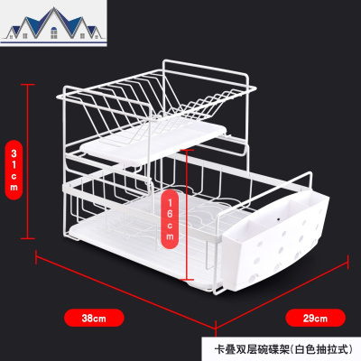 放碗架沥水架厨房晾放碗筷碗碟置物架双层收纳盒餐具碗盘收纳架子 三维工匠