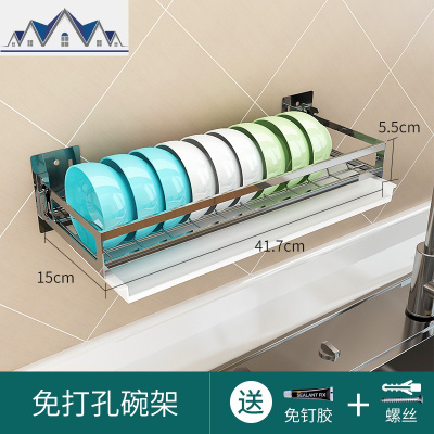 304不锈钢碗碟沥水架壁挂晾碗架免打孔厨房置物架放碗架收纳 三维工匠