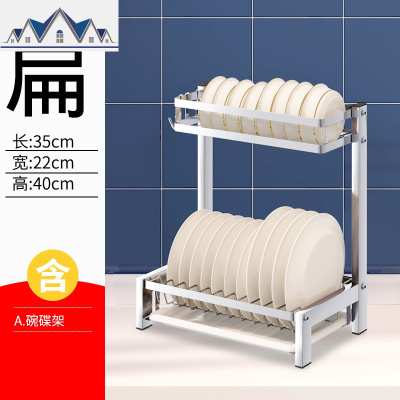 304不锈钢双层厨房碗架碗碟架2层晾放碗筷收纳置物架沥水架 三维工匠