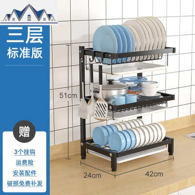 黑色不锈钢厨房置物架台面沥水架刀板架晾放碗架碗筷碗碟收纳架子 三维工匠