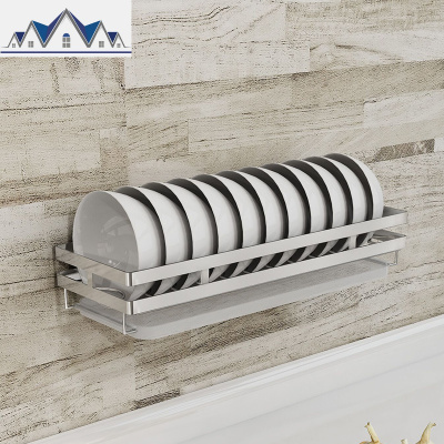 免打孔碗碟收纳架架壁挂式墙上沥水碗碟架单层晾碗放碟厨房置物架 三维工匠
