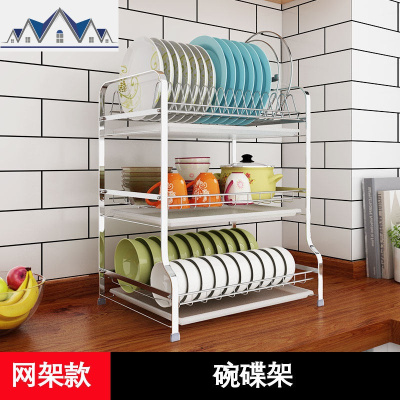 三层304不锈钢碗架沥水架厨房盘子架放晾洗碗碟餐具收纳盒 三维工匠收纳层架
