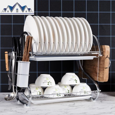 不锈钢碗架沥水架厨房置物架晾放碗刀砧筷双层碟盘用品碗筷收纳架 三维工匠