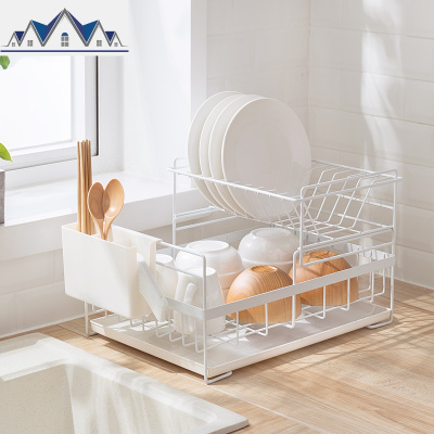 日式多功能餐具收纳厨房台面双层碗筷勺碟盘沥水架水置物储物架 三维工匠收纳层架
