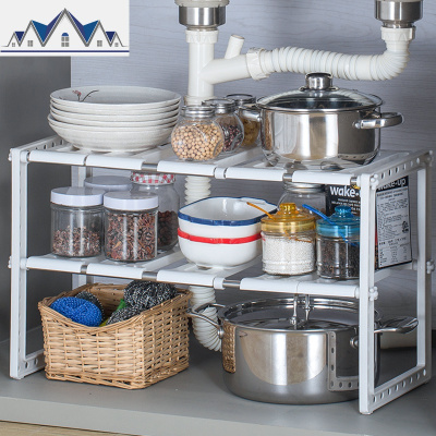 厨房用品家用大全沥水收纳架碗架锅架落地多层可伸缩下水置物架 三维工匠
