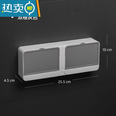 敬平双格翻盖壁挂式肥皂盒沥水免打孔香皂盒架家用浴室置物架带盖大号 沥水灰色-双格